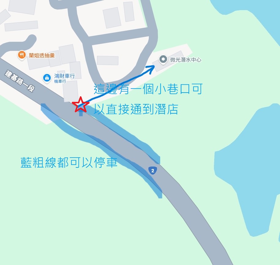 潛店介紹 合法店家,開立發票,微光浪設計有限公司,統編60573842 潛店就在瑞芳區建基路一段50巷5號。 2人小班制教學,1人也可報名 FD活動每人每天保險+場地費220元 店內課程優惠只能選擇一樣。 右上方加入官方LINE好友立即詢問詳細。 @863jlaco 加入官方LINE 活動社群主要是店家活動公告為主,歡迎自主加入。 停車位置 店裡位置屬於無尾巷,可停在大社公園內的停車格內。天氣好的時候容易停滿。停在台二線上是很容易的(圖2)由圖3的巷口進入不到1分鐘即可抵達潛店。